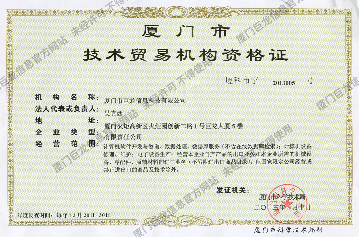 廈門市技術(shù)貿(mào)易機(jī)構(gòu)資格證